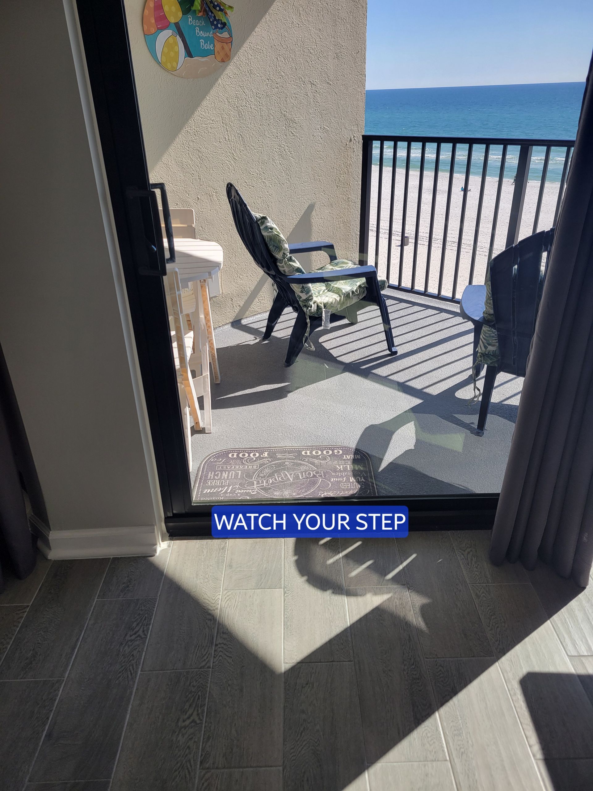 When enjoying the balcony, please watch your step.