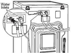 - Antes de empujar la máquina a su lugar, verifique si hay fugas en ambos extremos (abra completamente las válvulas de suministro de agua fría y caliente).
